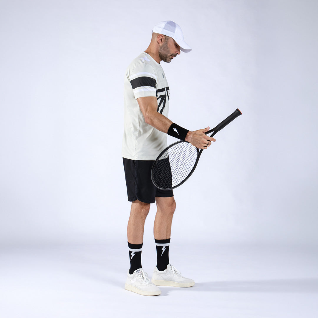 T-shirt in tessuto tecnico elasticizzato, made in Italy, leggerissimo (115 g/m²) con stampe sublimatiche per colori brillanti e duraturi.